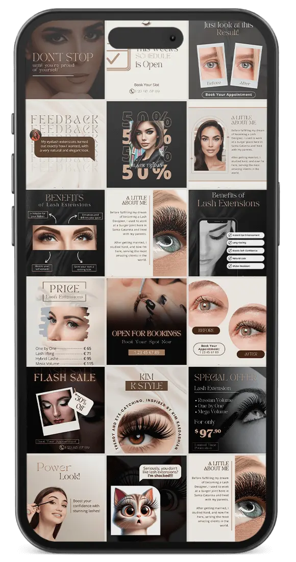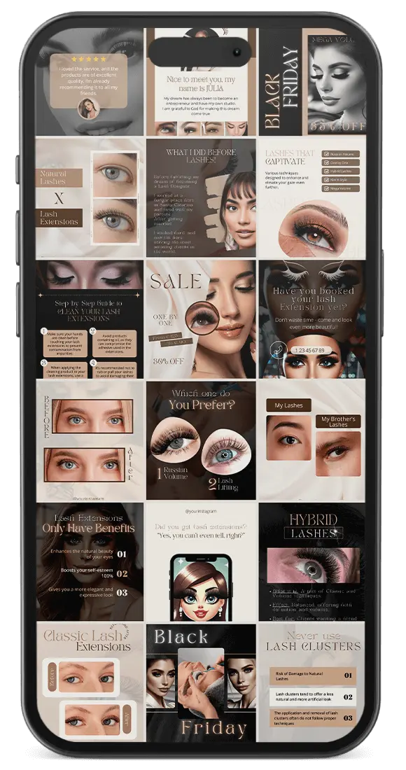 Cada design visa não apenas realçar a beleza dos trabalhos em extensão de cílios, mas também ampliar a presença digital e o sucesso dos negócios de suas clientes.